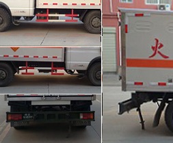 | 其他 | 该车适用于运输危险品为危险货物运输车。危险货物运输车辆的类型为EX/II。厢体顶部密封,不可开启.厢体可选装不同形式的侧开门或无侧门。运送爆炸品的品名:黑火药,压缩黑火药,电(非电)引爆雷管,爆破炸药,导爆索,点燃导火索.烟花爆竹。安全装置为导静电带,用于防止静电。运送爆炸品的项号:1.1D,1.1D,1.1B,1.1D,1.4G.1.4G.侧防护,后防护与车辆均采用焊接连接,材料均为:Q23,后防护断面尺寸(mm):200×50, 离地高度:440mm。仅采用发动机SOFIM8140.43S5对应油耗值为12.95L/100Km。该车前置排气管,安装限速装置,限速80km/h,该车安装带有卫星定位功能的行驶记录仪,仅采用前盘制动器和安装ABS的底盘,仅采用子午线轮胎。ABS系统控制器型号:APG3550500A4, ABS系统控制器生产企业:浙江亚太机电股份有限公司。 | ||
