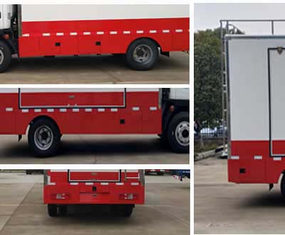 餐车外形长宽高尺寸为5950×2000×3300(mm),该车选用五十铃JE493ZLQ5发动机,功率85kw,可达国5排放标准,餐车整车型号为CLW5040XCCS5,轴距为3360mm,餐车CLW5040XCCS5底盘型号为开瑞牌SQR1049H16D-E底盘。