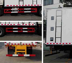 | 其他 | 1.该车用于运输雏禽,车辆顶部封闭不可开启。车辆颜色可选;文字喷涂位置可变化。厢体前部,侧板配装有自然进风窗口,用于通风。厢体前端上部装有制冷机组。2.整车长/轴距/后悬尺寸(mm)对应关系为:9250/5200/2685;8660/4700/2595。3.安装带有卫星定位功能的行驶记录仪。4.侧,后防护材料均为Q23碳钢,侧防护与货箱横梁采用焊接连接,后防护与车架采用焊接连接.后部防护装置截面尺寸126mm×50mm,后防护离地的高420mm。5.采用9.00R20 16PR,10R22.5 16PR规格轮胎。随底盘选装驾驶室。仅采用发动机ISF3.8s5168所对应的油耗值为:27.18。6.ABS系统型号/生产企业对应关系:44600XXXX0/威伯科汽车控制系统(中国)有限公司;CM4XL-4S/4M/广州科密汽车电子控制技术股份有限公司。 | ||