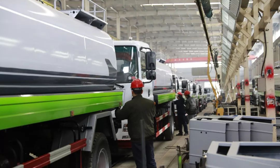 正月初七,程力环卫标准化车间流水线上一辆辆崭新的洒水车陆续下线,200台环卫车相继发货。