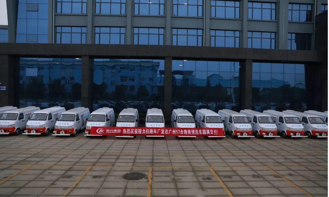 程力扫路车专业厂**批发往广州的新型智能化环卫车结集交付使用。
