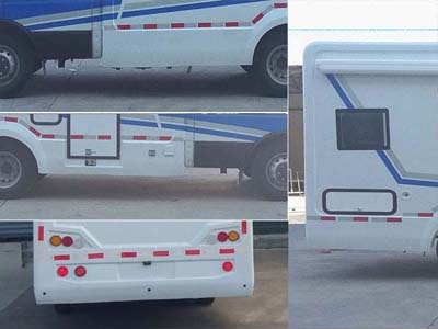 | 其他 | 车内设有桌椅,睡具,炊具,卫生设施及要的照明和空气调节等设施。选装车后部无窗户结构,右侧车门后置,后爬梯,右侧窗户变化,选装车厢左右两侧注水舱门和外接电源舱门,外置沐浴装置,车厢两侧散热格栅;可不装顶置空调;ABS系统控制器型号 :BOSCH ABS8, ABS 系统控制器生产企业 : 博世汽车部件 ( 苏州 ) 有限公司;选装外形尺寸以及后部灯具位置变化。 | ||