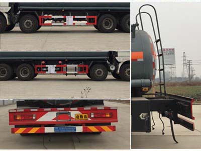 | 其他 | 该车适用于危险品运输。类项号:8;罐体有效容积:18.0立方米, 罐体外形尺寸(长×直径)(mm):9000XΦ1700。防护材料:Q23碳钢,连接方式:左右侧面及后下部防护均采用焊接连接,后部防护断面尺寸(mm):140×50,后部防护离地高度(mm):500。仅采用底盘子午线轮胎和带ABS的底盘,该车前轮安装盘式制动器,前置排气管,装配限速装置,限速80km/h。安装带有卫星定位功能的行驶记录仪。ABS型号为ZQFB-V,生产厂家为西安正昌电子有限责任公司。发动机型号与油耗值对应关系(L/100km):42.5(WP7.300E51),42.2(WP9H310E50),42.2(WP9H336E50),42.5(WP7.270E51)。随底盘选装同系列高低驾驶室、保险杠、后视镜及后组合灯具。整车长/轴距/前悬/后悬(mm)对应关系为:11950/1800+4575+1400/1485/2690,11950/1800+4175+1400/1485/3090,11950/1800+4175+1400/1525/3050。危险货物运输车辆的类型(AT型车辆)。 | ||