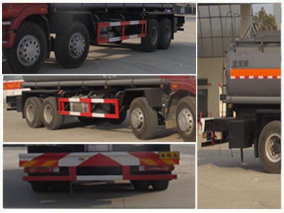 | 其他 | 该车适用于运输危险品。运输介质品名:次氯酸盐溶液,氢氯酸,硫酸密度分别为:1050千克/立方米,1040千克/立方米,1047千克/立方米,1045千克/立方米;类项号:8;罐体有效容积:18.0立方米; 罐体外形尺寸(长×径)(mm)为:8800×Φ1700。防护材料:Q23碳钢,连接方式:左右侧面及后部防护均采用焊接连接,后部防护断面尺(mm):120×50, 后部防护离地高度(mm):540。仅采用底盘子午线轮胎和带ABS的底盘,该车前轮安装盘式制动器,前置排气管,装配限速装置,限速79km/h | ||