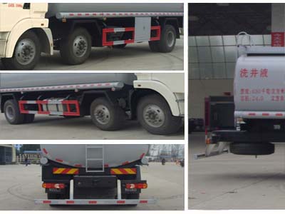 | 其他 | 1,该车型为非危化品运输车。2,罐体有效容积:24.0立方米,介质:洗井液或压裂液,密度:630千克/立方米;罐体外形尺寸(长×长轴×短轴)(mm):7500×2400×1650。3,侧,后防护装置材料:Q23碳钢,焊接,后防护断面尺寸(宽×高)(mm)50×120,离地高470mm;4,安装具有卫星定位功能的行驶记录仪,ABS生产厂家: 东科克诺尔商用车制动系统(十堰)有限公司;型号:3631010-C2000。5,车辆颜色可选,文字喷涂位置可变化。仅采用轴距为(mm)1950+4250的底盘。随底盘选装驾驶室前脸局部造型变化。整车长/前悬/轴距/后悬对应关系为(mm):10665/1515/1950+4250/2950,10665/1250/1950+4250/3215,10665/1450/1950+4250/3015。仅采用底盘轮胎型号(295/80R22.5 18PR,11.00R20 18PR)。后部可选带自流口。 | ||