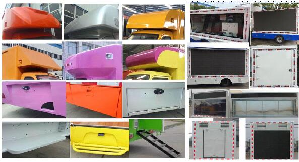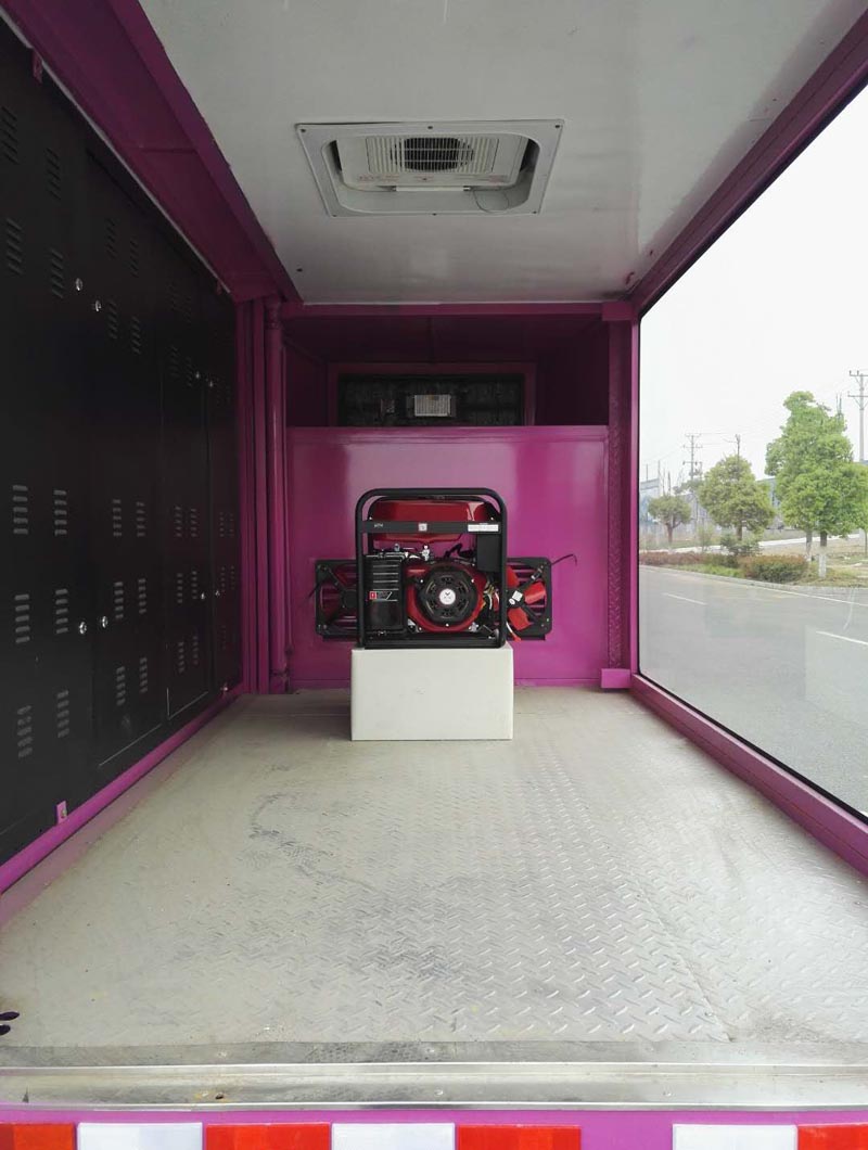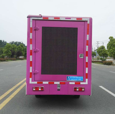 | 其他 | 该车是用于广告宣传和科普宣传的专用车辆,专用装置为LED屏;选装保险杠,选装新款前面罩、前部大灯及保险杠;两侧可选装LED屏或侧展;两侧均可选装:LED升降或者不带升降屏, 滚轴灯箱,条屏,活动舞台;后部可选装LED条屏或灯箱或后展,通风口;前部选装LED条屏,左右后可选装上翻遮阳板,下翻吧台,亦可可选装开单或双开门,或者封闭;选装顶帽造型和尾部隐藏式踏板.该车采用轴距(mm)3000,3200;整车长/前悬/轴距/后悬(mm)对应关系为:5100/610(670)/3000/1490(1430);5300/610(670)/3200/1490(1430). | ||