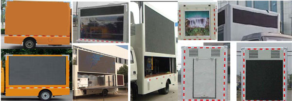| 其他 | 该车是用于广告宣传和科普宣传的专用车,车辆带OBD.随底盘选装驾驶室.车厢顶部封闭不可开启.导流罩可取消,选装双侧屏;后部通风口可取消.两侧可选装LED屏或一侧屏一面可封死. | ||