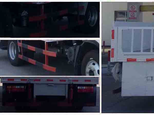 | 其他 | 侧面及后下部防护装置材料为Q235,连接方式为焊接连接,后部防护装置断面尺寸(长×宽):100mm×50mm,离地高度为480mm.轴距/整车长度对应关系(mm):2800/5495,3100/5795,3300/5995.发动机型号为:WP3Q130E50,ISF2.8s5129T,WP3Q116E50,对应油耗值为:12.9,12.7,12.6.ABS生产厂家:威伯科汽车控制系统(中国)有限公司,型号:ABS-E 4S/4M;浙江万安科技股份有限公司,型号:VIE ABS-II. | ||