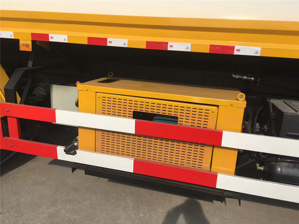 东风天锦高速路护栏清洗车产品作业时,采用三冲两刷的清洗工艺,即di一个喷嘴喷出的水将护栏表面的浮尘洗掉并使护栏表面润湿;然后,di一个刷辊进行di一次滚刷,刷去护栏表面的灰尘和油污;接着,第二个喷嘴喷出的水将经过刷洗脱离护栏表面的灰尘和油污冲洗掉,并再次润湿护栏表面;第二个刷辊再次滚刷护栏表面,将残余的灰尘和油污刷掉;较后一个喷嘴对护栏表面进行漂洗,完成整个清洗工艺。