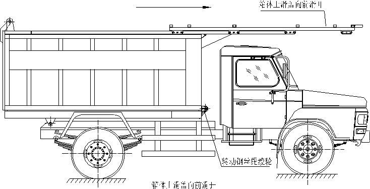 该车是由汽车底盘、自卸油缸、上滑盖、附车架、垃圾箱体等组成。该车操作由液压控制系统和手动绞轮控制来完成,控制方式可以为手动或电气控。