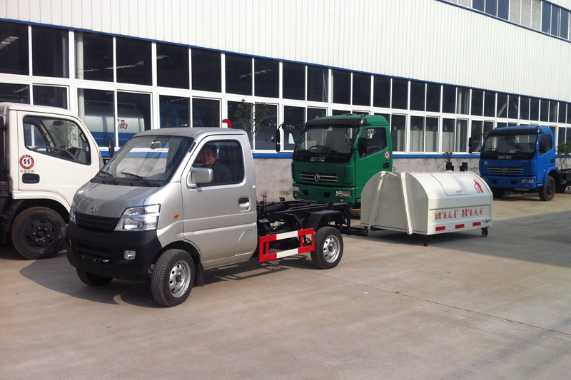 拉臂式垃圾车可将地下垃圾箱内的垃圾及垃圾箱一同拉**车上运走同时可自卸,降低了工人的劳动强度。该垃圾车的收运方式是目前上广泛采用的垃圾收运方式,车厢可卸式垃圾车可以实现一车多箱,大大降低了配备成本和空间等等;其专用装置的功能均以汽车发动机为动力,通过液压机构手动或电控来实现。车辆的箱体采用优质炭钢板全密封焊接结构,具有强度高、重量轻、不产生二次污染等优点。