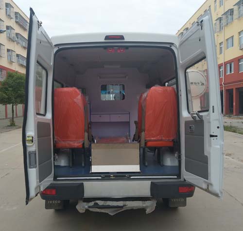 救护车整车型号为CLW5040XJHNJ5,外形长宽高尺寸为4850×2000×2640(mm),该车辆可选依维柯SOFIM8140.47Z5发动机,功率90kw,排放标准达到国Ⅴ,救护车CLW5040XJHNJ5采用原厂-底盘,可选轴距有mm。