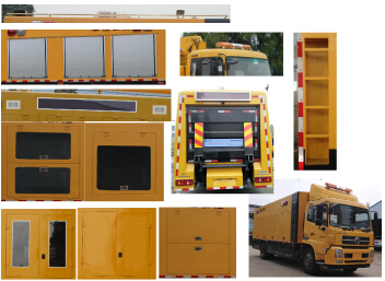 | 其他 | 1.驾驶室前脸扰流罩为选装件。选装前雾灯.选装卧铺侧窗装饰板;2.车头选装无导流罩,选装LED屏,嵌入式照明灯,卷帘门,对开门,带玻璃对开门;后部选装对开门,带玻璃对开门,LED显示屏,液压尾板,后部爬梯,选装无箭头灯;车顶选装无高杆灯,选装照明灯,探照灯,不锈钢围栏,顶置空调。3.该车专用装置:装有静音车厢,发电机组,电缆卷盘,控制系统等,内部可选装电驱式排水泵或柴油机驱动式水泵或液压水泵,主要用于应急供电,应急救险时抽排污水。4.后防护材质为钢材,以车身构件代替,后防护离地高度为500mm。侧防护材质为钢材,以车身构件代替,侧防护离地高度为470mm。5.带卫星定位的行驶记录仪,ABS型号: 3631010-C2000,生产厂家:东科克诺尔商用车制动系统(十堰)有限公司.此整车长/前悬/轴距/后悬对应关系为(mm):7550/1430/3800/2320,7650/1430/3800/2420,7950/1430/4200/2420,8050/1430/4200/2420,8250/1430/4500/2320,8350/1430/4500/2420,8450/1430/4700/2320,8550/1430/4700/2420,8750/1430/5000/2320,8850/1430/5000/2420. | ||