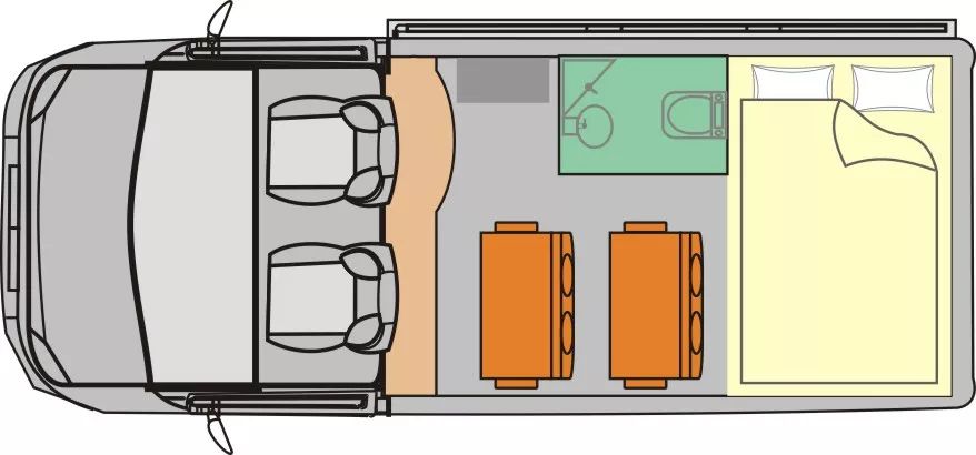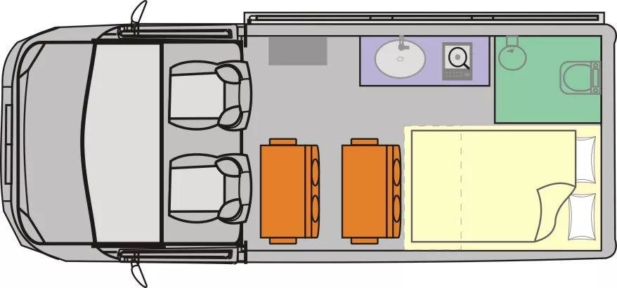 大通V80旅居B型房车不足6米的车长,载客6人,车厢内部尺寸较于同类型房车拥有更大的使用空间,布局设计灵活,可作多种内部布局安排。