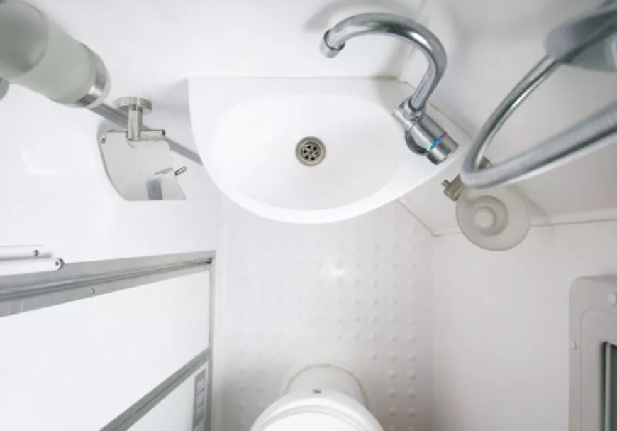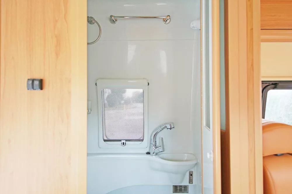 与厨房正对着的便是洗手间,卫浴间依然是传统式设计,卫生间内空间站两个人是没问题的,一些常规设施有淋浴、化妆镜、肥皂盒、毛巾架、马桶、照明灯、排气扇、窗帘等等,同时含有电热水器,为洗漱提供热水。有了燃油式加热系统后,浴室就变得更加美妙。燃油式加热系统同时也是拥有即热式热水器的功能,短短几分钟,就可以洗上舒服的热水澡。