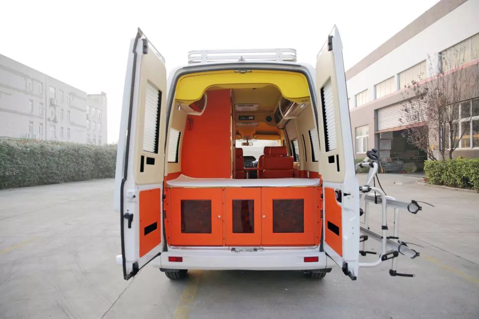 房车较后部便是卧室了,卧室内部经典布局采用了后部双人横向床床铺的设计,后铺超大型双人床,可躺下两个成年人不显得拥挤,给旅行者超级舒适的;房车后部尾门宽大,采用对开设计,在天气比较好的情况下增加了车内的采光和通风条件,后置床铺可以设计房车专用电动升降麻将机,降平可当床,给体验者更多休闲乐趣。