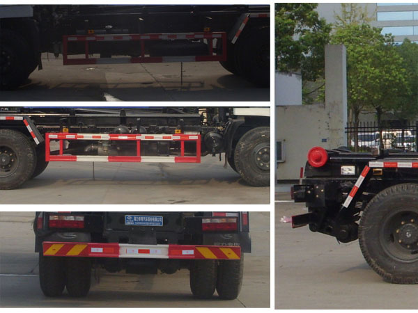 | 其他 | 1,该车仅选用4500mm,4700mm轴距底盘改装。2,整车长/前悬/轴距对应关系为(mm):(7300,7100)/(1450,1250)/4500;(7500,7300)/(1450,1250)/4700。4,额定载质量(kg)/驾驶室准乘人数(人)的对应关系为:10605/3,10670/2。5,防护材料:Q23碳钢,连接方式:左右侧面防护与副梁均采用焊接连接,后下部防护与车架采用焊接连接,后部防护断面尺寸(mm):150×50,后部防护离地高度(mm):430。6,ABS可选装型号为ABS-E 4S/4M,生产厂为威伯科汽车控制系统(中国)有限公司和3631010-C2000,生产厂为东科克诺尔商用车制动系统(十堰)有限公司;安装具有卫星定位功能的行驶记录仪。7,仅选用发动机与与油耗值对应关系为(100km/L):YC4FA130-50/27.1;YC4EG140-50/27.0;YC4S150-50/27.0;YC4E140-56 /27.2;YC4E160-56/27.2;YC6JA180-50/27.1;WP3.7Q140E50/26.7;WP4.1Q160E50/26.5;ISB170 50/27.2;ISB190 50/27.2。8,专用装置:拉臂机构,主要用于城镇环卫散装生活垃圾的收集与运输。9,随底盘选装驾驶室。 | ||