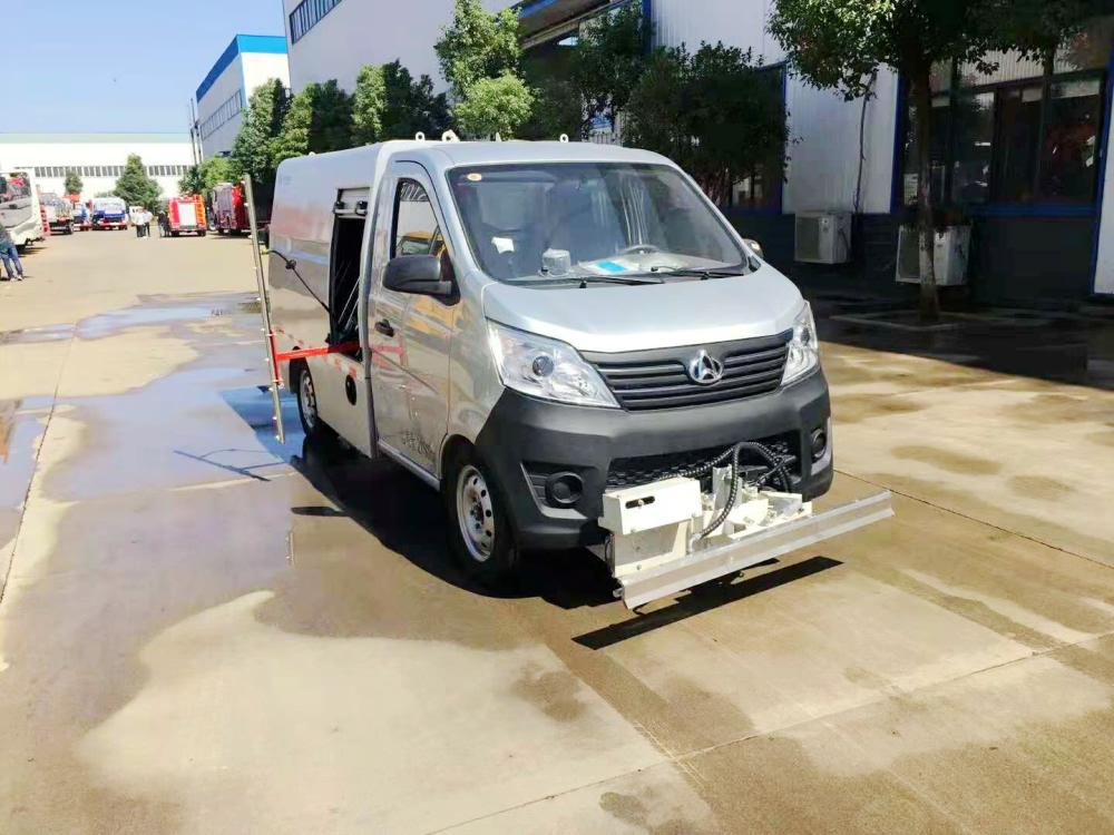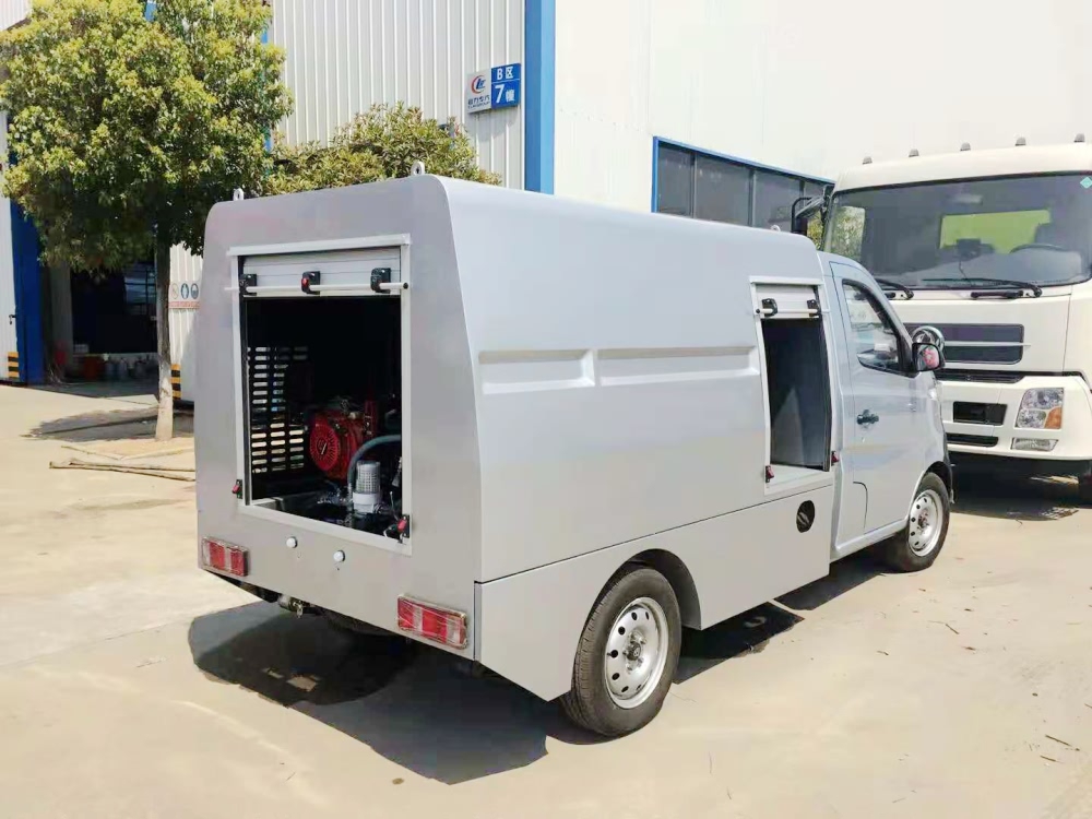 小型长安人行道路养护清洗车底盘发动机为重庆长安汽油98马力发动机,水箱1.5立方,在尾部安装本田汽油独立式机组,意大利高压水泵,车辆前置高压喷水杆,定点清污装置,后置20米卷盘带手持清洗装置,另配备手推清洗小车。小型长安人行道路养护清洗车通过手持清洗装置及手推小车式清洗装置,可清洗小广告、人行步道、路沿广告牌等各类公共设施,方便小巧灵活操作。