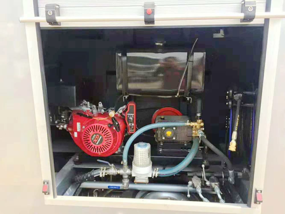 长安小型路面清洗车采用进口高压泵机组,高压水泵由独立机组机驱动,与底盘行车系统互不干涉。高压清洗机系统采用进口原装的高压水泵,高压力小流量,进口狭缝喷嘴,射流水压力大流量可控,可延长连续作业时间,较高压力可达150bar,流量达48L/min;副发采用知名品牌本田汽油机。前喷水架清洗宽度达1.5米。作业时,系统水压可到8MPa。