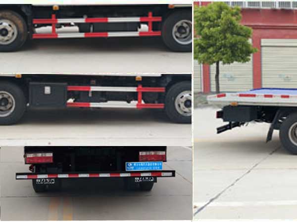 | 其他 | 该车安装清障平板,绞盘等专用装置,用于道路清障的专用作业车.托举质量:500kg.侧防护材料碳钢/Q235,螺栓连接;后下部防护采用焊接连接,断面尺寸(mm):100×50,后部防护离地高度(mm):420;ABS型号/厂家:ABS/ASR-24V-4S/4M/东科克诺尔商用车制动系统(十堰)有限公司;CM4XL-4S/4M,广州瑞立科密汽车电子股份有限公司;随底盘选装驾驶室. | ||