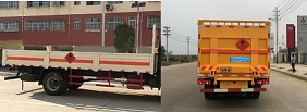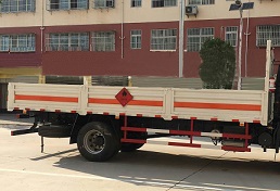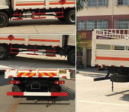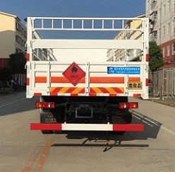 | 其他 | 该车适用于运输危险品,主要用于运输具有独立容器(瓶)包装的液化石油气,丁烷,乙炔,乙烷,丙烷,丁烯,打火机或打火机加油器,二氧化碳,压缩氧(氮,空气,氦,氩,氖),类项号:2.1,2.2。该车运输的介质为2.1项易燃气体时,车辆采用”易燃气体”标识牌,运输的介质为2.2项非易燃气体时,车辆采用”不燃气体”标识牌。可选装后部液压尾板,后部液压尾板收起状态长度是250mm。整车长/轴距/后悬对应关系为(mm):9000/5000/2570,8600/4700/2470,8400/4500/2470。发动机ISD210 50,ISB210 50,ISB190 50对应的油耗值分别为:29.0,29.1,29.1。防护材料:Q23碳钢,连接方式:左右侧面及后下部防护均采用焊接连接,后部防护断面尺寸(mm):100×40,后部防护离地高度(mm):490。该车安装带有卫星定位功能的行驶记录仪,仅采用前盘制动器和安装ABS以及前置消声器的底盘,采用子午线轮胎,安装限速装置,限速80km/h。专用装置为固定用卡槽。选装无栅栏,随底盘选装驾驶室。安装ABS,ABS型号:3631010-C2000,4460046440;生产厂家:东科克诺尔商用车制动系统(十堰)有限公司,威伯科汽车控制系统(中国)有限公司。 | ||
