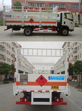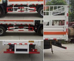 | 其他 | 该车适用于运输危险品,主要用于运输具有独立容器(瓶)包装的液化石油气,丁烷,乙炔,乙烷,丙烷,丁烯,打火机或打火机加油器,二氧化碳,压缩氧(氮,空气,氦,氩,氖),类项号:2.1,2.2。该车运输的介质为2.1项易燃气体时,车辆采用”易燃气体”标识牌,运输的介质为2.2项非易燃气体时,车辆采用”不燃气体”标识牌。可选装后部液压尾板,后部液压尾板收起状态长度是250mm,选装低货栏结构,选装苍栏外形结构。整车长/轴距/前悬/后悬对应关系为(mm):7250/4200/1160/1890,7250/4200/1240/1810,7250/3800/1160/2290,7250/3800/1240/2210。发动机ISF3.8s5154,ISF3.8s5168,CY4SK151,MC05.14-50,MC05.16-50,MC05.18-50分别对应的油耗值为:19.4,19.7,19.7,19.2,19.5,19.9。侧防护和后防护装置材料材质为Q23碳钢,侧防护与箱体底部焊接连接,后防护装置与车架采用焊接连接。后防护截面尺寸(mm):100×50,离地高度为540mm。该车安装带有卫星定位功能的行驶记录仪,仅采用前盘制动器和安装ABS以及前置消声器的底盘,采用子午线轮胎,安装限速装置,限速80km/h。专用装置为固定用卡槽。ABS系统型号为XH-KQ4S4M-E01,生产企业为广州市西合汽车电子装备有限公司。 | ||