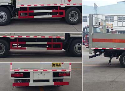 | 其他 | 该车为危险货物运输车,主要用于运输具有独立容器(瓶)包装的液化石油气,丁烷,乙炔,乙烷,丙烷,丁烯,打火机或打火机加油器,二氧化碳,压缩氧(氮,空气,氦,氩,氖);压缩煤气,类项号:2.1,2.2,2.3。防护材料:Q23碳钢,连接方式:左右侧面及后下部防护均采用焊接连接,后部防护断面尺寸(mm):100×50,后部防护离地高度(mm):350,该车随底盘选装驾驶室,选装后部液压尾板:箱栏板内长(mm):3800,收起状态长度是(mm):250;发动机型号:CY4BK551,YC4FA115-50,D28D11-5DA,对应油耗值分别为(L/100km):17.7,17.4,17.3;该车安装带有卫星定位功能的行驶记录仪,仅采用前盘制动器和安装ABS以及前置消声器的底盘,采用子午线轮胎,安装限速装置,限速80km/h,ABS厂家及型号:襄阳东风隆诚机械有限责任公司/ABS/ASR-24V-4S/4M,选用轮胎型号以及层级:7.00R16 14PR。 | ||