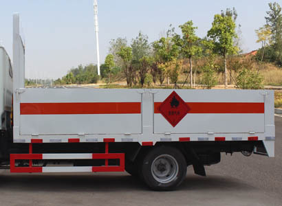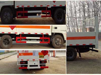 | 其他 | 该车适用于运输危险品。厢体顶部封闭,不可开启。该车用于运输具有独立容器(瓶)包装的易燃气体(类项号:2.1):液化石油气,压缩甲烷或甲烷含量高的压缩天然气,乙炔,乙烷,丁烷,丙烯,丁烯,二甲醚,压缩氧;用于运输具有独立容器(瓶)包装的非易燃气体(类项号:2.2):二氧化碳,压缩氧(氮,空气,氦,氩,氖)。防护材料:Q23碳钢,连接方式:左右侧面及后下部防护均采用焊接连接,后部防护断面尺寸(mm):100×50,后部防护离地高度(mm):420。仅采用底盘子午线轮胎和带ABS的底盘,该车前轮安装盘式制动器,前置排气管,装配限速装置,限速80km/h。安装带有卫星定位功能的行驶记录仪。ABS系统型号:APG3550500A,ABS系统生产厂家:浙江亚太机电股份有限公司。油耗对应关系(L/100km):13.0(JX493ZLQ5)。随底盘选装驾驶室。选装无栅栏。可选装后部液压尾板,后部液压尾板收起状态长度是250mm。危险货物运输车辆的类型(FL型车辆)。 | ||