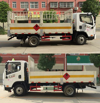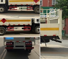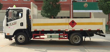| 其他 | 该车适用于运输危险品为危险货物运输车,主要用于运输具有独立容器(瓶)包装的液化石油气,丁烷,乙炔,乙烷,丙烷,丁烯,打火机或打火机加油器,二氧化碳,压缩氧(氮,空气,氦,氩,氖),类项号:2.1,2.2。该车运输的介质为2.1项易燃气体时,车辆采用”易燃气体”标识牌,运输的介质为2.2项非易燃气体时,车辆采用”不燃气体”标识牌。选装无栅栏,选装苍栏外形结构。发动机WP2.3Q110E50,4B2-95C50,WP2.1Q95E50分别对应的油耗值为:12.01,12.0,12.0。侧防护和后防护装置材料材质为Q23碳钢,侧防护与箱体底部焊接连接,后防护装置与车架采用焊接连接。后防护截面尺寸(mm):110×50,离地高度为450mm。该车安装带有卫星定位功能的行驶记录仪,仅采用前盘制动器和安装ABS以及前置消声器的底盘,采用子午线轮胎,安装限速装置,限速80km/h。专用装置为固定用卡槽。ABS生产厂家/型号:上海万捷汽车控制系统有限公司/VIE ABS-II。 | ||