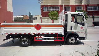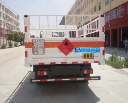 | 其他 | 该车适用于运输危险品,主要用于运输具有独立容器(瓶)包装的液化石油气,丁烷,乙炔,乙烷,丙烷,丁烯,打火机或打火机加油器,二氧化碳,压缩氧(氮,空气,氦,氩,氖),类项号:2.1,2.2。该车运输的介质为2.1项易燃气体时,车辆采用”易燃气体”标识牌,运输的介质为2.2项非易燃气体时,车辆采用”不燃气体”标识牌。选装无栅栏,随底盘选装驾驶室。采用发动机型号YN27CRE1,YN38CRE1,CY4BK151,JE493ZLQ5,D25TCIE1,D25TCIE3对应油耗值分别为油耗 (L/100km):11.2,11.6,12.0,11.4,12.0,12.0。整车长/轴距/后悬对应关系为(mm):5995/3280/1555,5995/3160/1675.防护材料:Q23碳钢,连接方式:左右侧面及后下部防护均采用焊接连接,后部防护断面尺寸(mm):100×50,后部防护离地高度(mm):520,该车安装带有卫星定位功能的行驶记录仪,仅采用前盘制动器和安装ABS以及前置消声器的底盘,采用子午线轮胎,安装限速装置,限速79km/h,专用装置为固定用卡槽。ABS系统型号为XH-KQ4S4M-E01,生产企业为广州市西合汽车电子装备有限公司。 | ||
