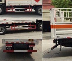 | 其他 | 该车适用于运输危险物品为危化品运输车。选装不带导流罩时的整车高度为2350mm,主要用于运输具有独立容器(瓶)包装的液化石油气,丁烷,乙炔,乙烷,丙烷,丁烯,打火机或打火机加油器,二氧化碳,压缩氧(氮,空气,氦,氩,氖),类项号:2.1,2.2。该车运输的介质为2.1项易燃气体时,车辆采用”易燃气体”标识牌,运输的介质为2.2项非易燃气体时,车辆采用”不燃气体”标识牌。仅采用发动机型号4B2-115C50对应油耗值分别为油耗 (L/100km):12.61。该车安装带有卫星定位功能的行驶记录仪,仅采用前盘制动器和安装ABS以及前置消声器的底盘,采用子午线轮胎,前置排气管,安装限速装置,限速80km/h。专用装置为固定用卡槽。侧防护和后防护装置材料材质为Q23碳钢,侧防护与箱体底部焊接连接,后防护装置与车架采用焊接连接。后防护截面尺寸(mm):100×50,离地高度为440mm。ABS系统控制器型号是CM4XL-4S/4M,ABS系统控制器生产企业是广州科密汽车电子控制技术股份有限公司. | ||