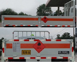 | 其他 | 该车适用于运输危险物品为危化品运输车。选装外部苍栏式结构。主要用于运输具有独立容器(瓶)包装的液化石油气,丁烷,乙炔,乙烷,丙烷,丁烯,打火机或打火机加油器,二氧化碳,压缩氧(氮,空气,氦,氩,氖),类项号:2.1,2.2。该车运输的介质为2.1项易燃气体时,车辆采用”易燃气体”标识牌,运输的介质为2.2项非易燃气体时,车辆采用”不燃气体”标识牌。仅采用发动机LJ4A15Q对应的油耗值为(L/100km):9.1。整车长/轴距/后悬对应关系为(mm):4800/2600/1019,5120/2600/1339,5120/2800/1139,5120/3000/939,5120/3300/639.该车安装带有卫星定位功能的行驶记录仪,仅采用前盘制动器和安装ABS以及前置消声器的底盘,采用子午线轮胎,前置排气管,安装限速装置,限速80km/h。专用装置为固定用卡槽。ABS型号及厂家:APG3550500A,浙江亚太机电股份有限公司。 | ||