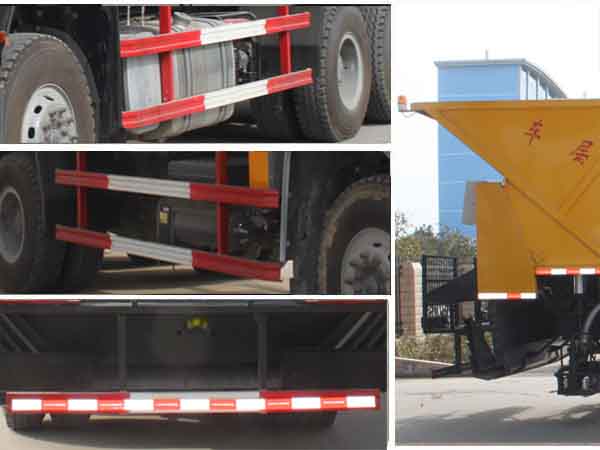 | 其他 | 罐体有效容积:7.78立方米;运输介质:乳化沥青,密度:0.9吨/立方米。罐体外形尺寸(长/长轴/短轴)(mm):2240/2190/1860(实际尺寸为2400/2350/2020,保温层厚度为80mm)。轴距/整车长/后悬对应关系为(mm):4600+1350/10200/2750;4300+1400/10225/3025。防护材料:Q23碳钢,连接方式:左右侧面及后下部防护均采用焊接连接,后部防护断面尺寸(mm):120×50,后部防护离地高度(mm):450。ABS系统型号为:4460046300,生产企业为:威伯科汽车控制系统(中国)有限公司。安装具有卫星定位功能的行驶记录仪。随底盘选装高顶驾驶室,选装外形图片. | ||