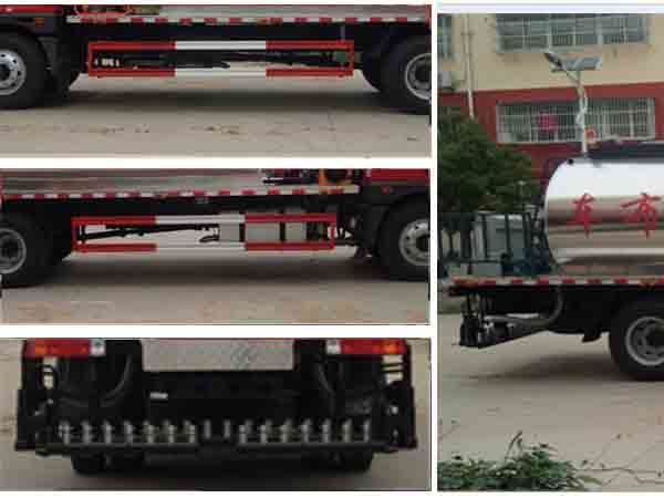| 其他 | 罐体有效容积:7.84立方米,运输介质为液态沥青,密度:900千克/立方米.椭圆罐体外形尺寸(长/长轴/短轴)(mm):4450/2400/1600(罐体内部尺寸为4150/2100/1300), 罐体保温层厚度为150mm.防护材料:Q23碳钢,连接方式:左右侧面防护与副梁采用焊接连接;后部专用装置离地高350mm,与后防护相干涉,故后防护豁免. ABS生产厂家/型号:上海万捷汽车控制系统有限公司/VIE ABS-II.该车为修路专用车辆,专用装置为洒布机构. | ||