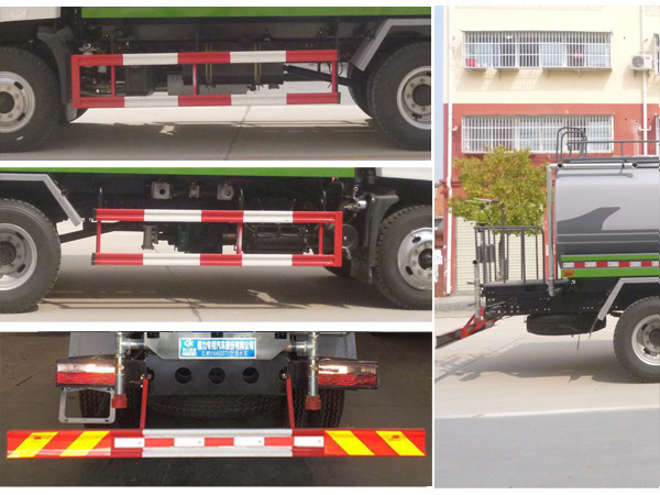 | 其他 | 1,仅选用3950mm,4500mm和4700mm轴距底盘改装。2,罐体有效容积9.9立方米,整车长/轴距/罐体外形尺寸(长×长轴×短轴)/前悬的对应关系为(mm):8600/4700/4800×2150×1420/1450;8400/4700/4800×2150×1420/1250; 8400/4500/4800×2150×1420/1450; 8200/4500/4800×2150×1420/1250; 7850/3950/4300×2300×1480/1450; 7650/3950/4300×2300×1480/1250。3,防护材料:Q235B碳钢,连接方式:左右侧面及后下部防护均采用螺栓连接,后部防护断面尺寸(mm):150×50,后部防护离地高度(mm):500。4,ABS系统生产厂家:生产厂家为东科克诺尔商用车制动系统(十堰)有限公司,型号为3631010-C2000。5,该车可选装:A,后部带弧形喷雾和LED箭头指示灯;B,后部带LED箭头指示灯;C,后部带弧形喷雾装置。6,专用装置:罐体,主要用于洒水和园林绿化。7.安装具有卫星定位功能的车辆行驶记录仪。8.随底盘选装驾驶室。9、可选装旧款外观。 | ||