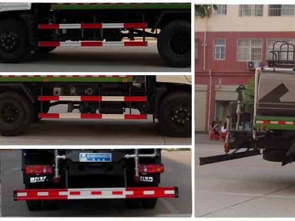 | 其他 | 1.罐体有效容积:9.93立方米,整车长度/前悬/轴距的对应关系为(mm):7650/1250/3950;7850/1450/3950;8200/1250/4500;8400/1450/4500;8400/1250/4700;8600/1450/4700;轴距与罐体外形尺寸(长×长轴×短轴)的对应关系为(mm):3950/4300×2150×1550;4500/4800×2150×1400;4700/4800×2150×1400;轴距(mm)/整备质量(kg)/驾驶室准乘人数(人)/额定载质量(kg)的对应关系为:3950/5970/2/9900,3950/5970/3/9835,4500/6340/2/9530,4500/6340/3/9465,4700/6340/2/9530,4700/6340/3/9465。2.侧防护及后下部防护装置均采用Q235B材质,均采用螺栓连接,后下部防护尺寸:150×50(mm),离地面高度500mm。3. ABS型号为3631010-C2000,生产厂家为东科克诺尔商用车制动系统(十堰)有限公司。4.专用装置:罐体,主要用于路面洒水及园林绿化。5.选装主管路进出口位于车辆左侧。6.安装具有卫星定位功能的车辆行驶记录仪。7、随底盘选装驾驶室。8、该车可选装:A,后部带弧形喷雾和LED箭头指示灯;B,后部带LED箭头指示灯;C,后部带弧形喷雾装置。 | ||