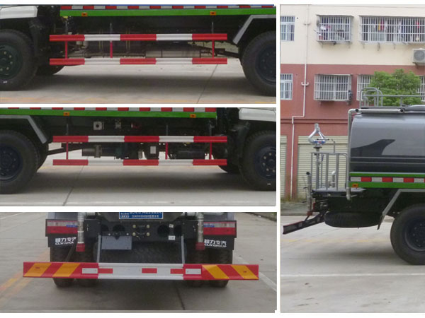 | 其他 | 1,罐体有效容积:10.14立方米,罐体外形尺寸(长/长轴/短轴)为( mm):4300×2300×1500;该车仅选用3950mm轴距底盘改装。整车长(mm)/前悬(mm)/接近角(°)对应关系为:7840/1440/21,7650/1250/23,7700/1300/23。2,防护材料:Q235B碳钢,连接方式:左右侧面及后下部防护均采用螺栓连接,后部防护断面尺寸(mm):150×50,后部防护离地高度(mm):500。3,ABS型号可选用ABS-E 4S/4M,生产厂为威伯科汽车控制系统(中国)有限公司;3631010-C2000,生产厂为东科克诺尔商用车制动系统(十堰)有限公司;XH-KQ4S4M-E01,生产厂为广州市西合汽车电子装备有限公司;安装带卫星定位功能的行驶记录仪。4,文字喷图位置,车辆颜色可变化。5,专用装置:罐体,主要用于路面洒水及园林绿化。6,该车可选装:A,后部带弧形喷雾和LED箭头指示灯;B,后部带LED箭头指示灯;C,后部带弧形喷雾装置。7,随底盘选装驾驶室照片。 | ||