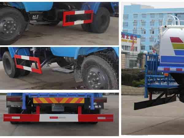 洒水车外形长宽高尺寸为7270,7520×2300×2800(mm),该车选用玉柴YC4E140-56发动机,功率103kw,可达国5排放标准,洒水车整车型号为CLW5120GSSE5,轴距为5200mm,洒水车CLW5120GSSE5底盘型号为东风牌EQ1121FLJ3底盘。