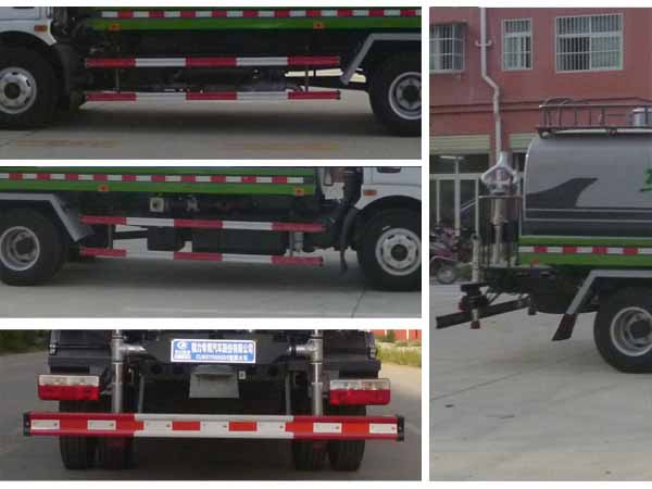| 其他 | 1、罐体有效容积:6.77立方米,罐体外形尺寸(长×长轴×短轴)为(mm):4200×1800×1360,前悬(mm)/整车长度(mm)对应关系:1130/6920,1150/6940;2、侧防护及后下部防护装置均采用Q235B材质,均采用螺栓连接, 后部防护断面尺寸(mm):120×50,后部防护离地高度(mm):470。3、ABS型号:ABS/ASR-24V-4S/4M,厂家:襄阳东风隆诚机械有限责任公司。4、专用装置:罐体,主要用于洒水和园林绿化。 | ||