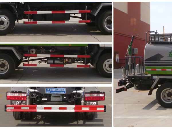 | 其他 | 1,罐体有效容积:4.24立方米,罐体外形尺寸(长×长轴×短轴关系为(mm): 3400×1650×1100。2,侧防护及后下部防护装置均采用Q235B材质,均采用螺栓连接,后下部防护尺寸:120×50(mm),离地面高度465mm;3,车辆颜色可变化,文字喷图位置可变化;4,ABS生产厂家:上海万捷汽车控制系统有限公司,ABS型号: VIE ABS-II。5,专用装置:罐体,主要用于洒水和园林绿化。 | ||