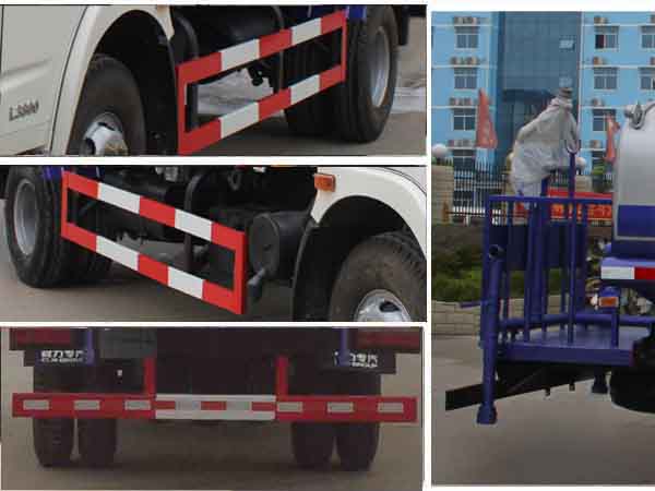 | 其他 | 1,罐体有效容积:8.2立方米,罐体外形尺寸(长×长轴×短轴关系为(mm): 4400×2100×1320;2,侧防护及后下部防护装置均采用Q23材质,均采用焊接连接,后下部防护尺寸:50×120(mm),离地面高度450mm。3,随底盘选装前面罩,前保险杠,前组合灯具.ABS型号:ABS/ASR-24V-4S/4M,ABS型号厂家:襄阳东风隆诚机械有限责任公司。4,文字喷图位置和车辆颜色可变化。5.专用装置:罐体,主要用于洒水及园林绿化。 | ||
