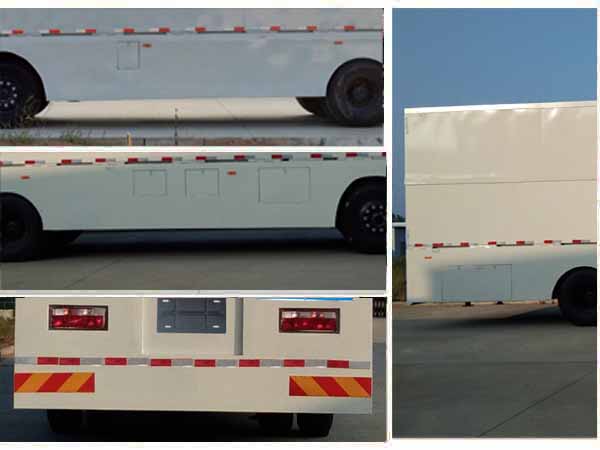 | 其他 | 该车是进行舞台文艺表演的专用车辆.侧防护和后防护采用裙板结构,后防护裙板离地高度为500mm.ABS系统控制器型号/生产企业:VIE ABS-II/浙江万安科技股份有限公司,CM4XL-4S/4M/广州科密汽车电子控制技术股份有限公司. | ||