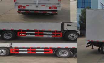 | 其他 | 安装具有卫星定位功能的行驶记录仪。选装后部单开门和双开门。ABS型号为APG3550500A,生产企业为浙江亚太机电股份有限公司.ABS型号为ABS-E,生产企业为威伯科汽车控制系统(中国)有限公司。侧,后防护装置材料:Q23碳钢,焊接,后防护断面尺寸(宽×高)(mm)50×100,离地高430mm。车辆尾部选装无拐臂。货厢顶部封闭,不可开启。专用装置:折叠式平台,支腿,顶棚,作业时两侧侧板展开随顶部一起举升,侧板可向下展开平铺形成舞台地板,内藏折叠式舞台板。 | ||