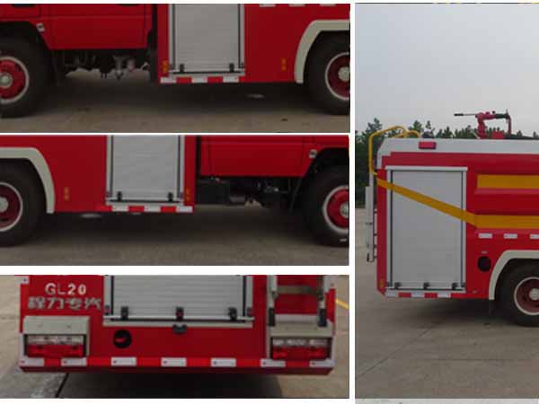 干粉水联用消防车CLW5071GXFGL20车辆发动机为朝柴CY4BK551发动机,其功率为75kw,国5排放标准,干粉水联用消防车车辆型号为CLW5071GXFGL20,外形尺寸长宽高分别为6210×2000×2740(mm),底盘部分为东风牌原厂EQ1070DJ3BDF底盘,轴距2800mm,上装部分采用优良配件。