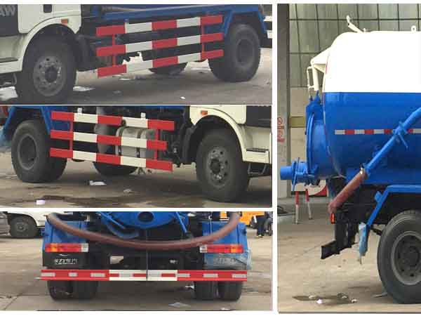 吸污车外形长宽高尺寸为8260×2480×3200(mm),该车选用一汽BF6M2012-20E51发动机,功率150kw,可达国五排放标准,吸污车整车型号为CLW5160GXWC5,轴距为4500mm,吸污车CLW5160GXWC5底盘型号为解放牌CA1160P62K1L2E5Z底盘。