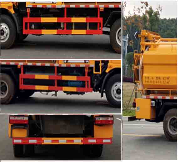 | 其他 | 污水罐体载质量2655kg,有效容积3.0立方米,介质:液态污物,密度:900千克/每立方米;清水罐体载质量1400kg,有效容积1.47立方米,介质:水,密度:1000千克/每立方米.此车总载质量4055kg=污水罐体载质量2655kg+清水罐体载质量1400kg. 防护材料:Q23碳钢,连接方式:左右侧面及后下部防护均采用焊接连接,后部防护断面尺寸(mm):100×50,后部防护离地高度(mm):420.水罐和吸污罐为两个独立罐体,清洗功能时用水罐, 吸污功能时用吸污罐,清洗吸污两种功能不同时使用,两罐不能同时满载.专用装置为高压泵.ABS系统生产厂家,型号 :襄阳东风隆诚机械有限责任公司,ABS/ASR-24V-4S/4M. | ||