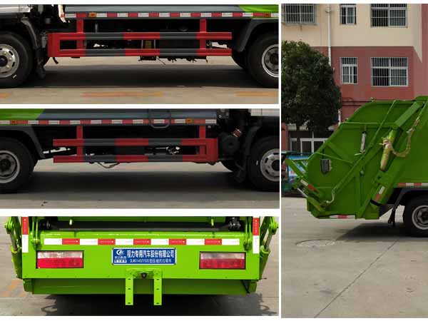 压缩式垃圾车采用陕汽牌原厂SX1140GP5381底盘,该车辆轴距3800mm,压缩式垃圾车整车型号为CLW5140ZYSS5,配置扬柴WP3Q130E50发动机,功率96kw,排放标准达到国五,压缩式垃圾车CLW5140ZYSS5外形长宽高尺寸为7600,7200×2300×3000(mm)。