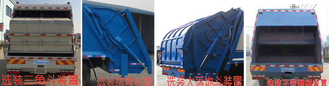 | 其他 | 1、随底盘选装驾驶室。2、该车有四种可选翻转样式,A:翻桶装置(主照片),B:三角斗装置,C:摆臂装置,D:大落地斗装置,E:不带翻桶装置。当选择ABCD时,整车后悬为2200mm,后伸为400mm。当选择E时,整车后悬为2200mm,无后伸。3、防护材料:Q235碳钢,连接方式:左右侧面防护采用焊接连接在箱体底板上,后部防护由专用装置代替豁免,离地高度为375mm。4、装有ABS,ABS系统生产厂家:西安正昌电子有限责任公司,型号:ZQFB-V;该车安装带卫星定位功能的行驶记录仪。5、发动机型号与油耗值对应关系为(L/100km): WP3Q130E50/26.79。6、专用装置:箱体,主要用于城镇环卫,散装生活垃圾的收集与运输。 | ||
