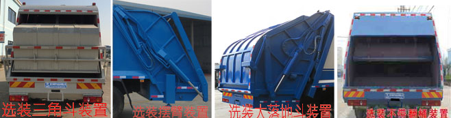 | 其他 | 1、该车仅选用3800mm和4200mm轴距底盘。2、该车有五种可选翻转样式,A:翻桶装置(主照片),B:三角斗装置,C:摆臂装置,D:大落地斗装置,E:不带翻桶装置。当选择ABCD时,后悬为2470mm,离去角为15°,该车整车长/轴距的对应关系为(mm):8110/4200, 7710/3800;当选择E时,后悬为2220mm,离去角为16°,该车整车长/轴距的对应关系为(mm):7860/4200, 7460/3800。3、防护材料:Q235碳钢,连接方式:左右侧面防护采用焊接连接在箱体底板上,后部防护由专用装置代替豁免,离地高度为450mm。4、装有ABS,ABS型号:3631010-C2000,生产厂家:东科克诺尔商用车制动系统(十堰)有限公司;该车安装带卫星定位功能的行驶记录仪。5、仅采用的发动机型号与油耗值对应关系为(L/100km): ISD180 50/24.29,ISD160 50/23.98,ISB180 50/24.9。6、专用装置:箱体,主要用于城镇环卫,散装生活垃圾的收集与运输。7、随底盘选装驾驶室。 | ||