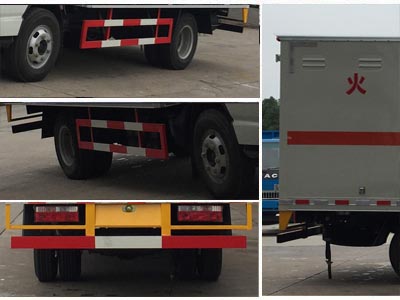 | 其他 | 该车适用于运输危险品。厢体顶部封闭,不可开启。该车主要用于运输独立容器包装的易燃气体:液化石油气,原油气,压缩天然气,乙炔,甲烷,乙烷,丙烷,丁烷,丙烯,丁烯,二甲醚,硫化氢,打火机或打火机加油器(装有易燃气体),压缩氢,类项号:2.1;运输具有独立容器包装的非易燃气体:液化气体(非易燃,充有氮,二氧化碳或空气),压缩氧(氮,空气,氦,氩,氖),二氧化碳,类项号2.2;运输具有独立容器(瓶)包装的易燃气体:压缩煤气,类项号:2.3。防护材料:Q235碳钢,连接方式:左右侧面及后下部防护均采用焊接连接,后部防护断面尺寸(mm):100×50,后部防护离地高度(mm):410。仅采用底盘子午线轮胎和带ABS的底盘,该车前轮安装盘式制动器,前置排气管,装配限速装置,限速80km/h。安装带有卫星定位功能的行驶记录仪。ABS控制器型号及生产企业:CM4XL-4S/4M,广州科密汽车电子控制技术股份有限公司。选装侧门型式及位置,厢体颜色可变化,文字喷涂位置可变化。后部液压尾板收起状态长度是250mm。 | ||